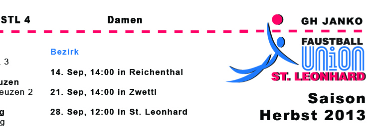 Aufgrund diverser Anfragen stellen wir hier den Faustball-Kalender mit allen Terminen der Herbstsaison auch auf diesem Weg zur Verfügung. Natürlich liegt dieser auch am Samstag bei der Heimrunde (Sa., 07.09.2013, …