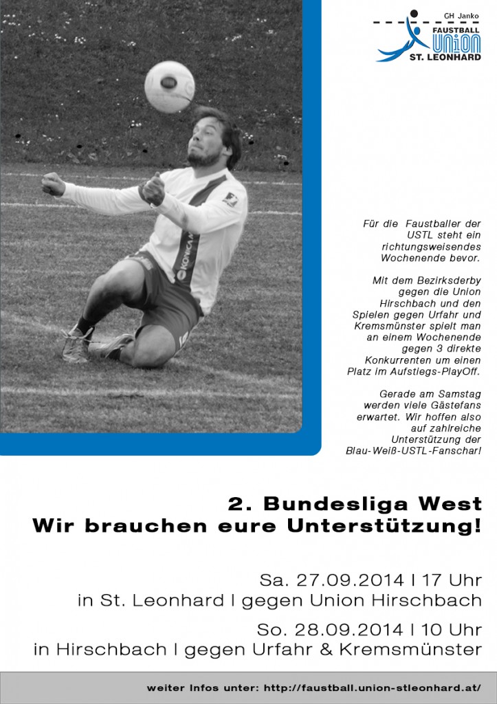Mit dem Bezirksderby gegen die Union Hirschbach und den Spielen gegen Urfahr und Kremsmünster spielt man an einem Wochenende gegen 3 direkte Konkurrenten um einen Platz im Aufstiegs-PlayOff.