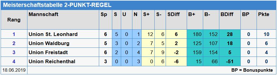 Heute war die letzte Runde der Bezirksliga gegen Freistadt. Obwohl der erste Platz in der Tabelle schon fixiert war, wollte man natürlich nochmals voll angreifen und die Saison mit einem Sieg beenden. Anfangs war aber leider von diesem Angriff nicht viel zu sehen. Mit sehr vielen Eigenfehlern konnte man gerade so den ersten Satz gewinnen, die beiden folgende wurden leider verloren. Beim Stand von 2:1 für Freistadt mobilisierte die Leonharder nochmals alle Kräfte und erkämpften sich den Einzug in den entscheidenden 5. Satz. Auch in diesem Satz gelang der Start nicht nach Wunsch, doch nachdem wir ein 1:5 für Freistadt auf ein 6:5 für uns gedreht hatten, konnten wir den Satz ohne große Gefahr nach Hause spielen.