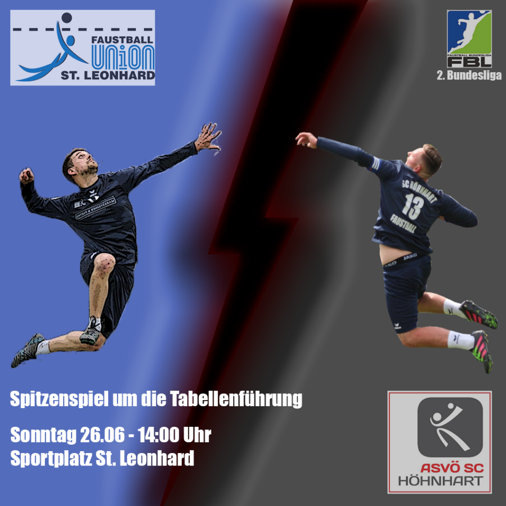 Am Sonntag empfangen die Leonharder Faustballer den Tabellenführer zum Spitzenspiel der 2. Bundesliga. Der ASVÖ SC Höhnhart liegt derzeit auf Rang 1 der Tabelle, Punktegleich auf Rang zwei liegen die Jungs aus St. Leonhard.